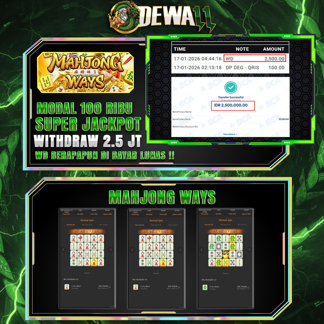 Gabung bersama DEWA11 dan Dapatkan kesempatan jackpot sensasional dalam 15 menit seperti bukti banner ini bukan sekedar janji hanya Depo 100k Withdraw 2,5 Juta Pass hari ini.